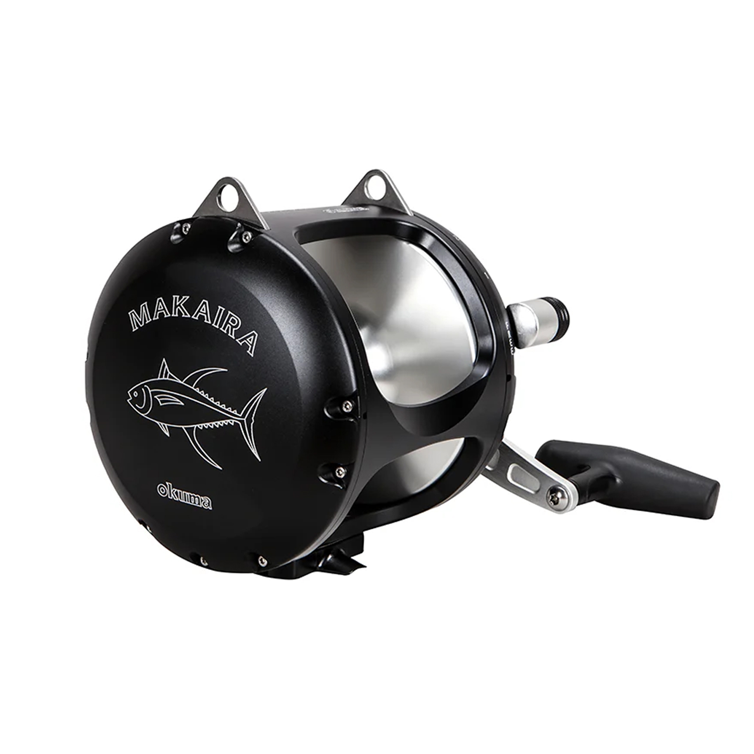 The Okuma Makaira SEa Black is a limited-edition addition to the already popular Makaira family of reels. This reel features a stunning matte black anodized aluminum frame adorned with an etched silver yellowfin tuna that glistens brightly against the finish.